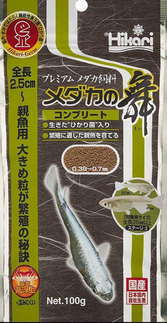 愛好家向けのメダカプレミアム飼料。繁殖力を目的とした、嗜好性・栄養価の高い飼料。(親魚用)